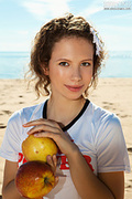 Sunbathing on the sunny sea shore makes this cute and sexy teen lose her mind and gets fully naked.