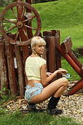 Pigtailed cutie erica fontes shows off her hard body in sexy cut off shorts and cowgirl boots, then takes a vibrator in each hole with help from her friend blue angel