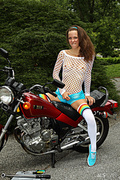 Stunning malena morgan takes you for a spin as she works on her motorcycle in a sexy mesh top and tall socks, then finds more stimulating use for her tools, toying them in her perfectly shaved pussy