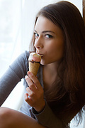 With refined and graceful poses, daisy gold flaunts her smoking hot body by the window.