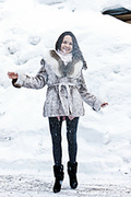 After playing outside in the snow ralina hits the bed naked and uninhibited poses and flirting in front of the camera.