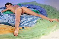 Olka faunts her slender body and small tits in a studio shoot then spreads her legs wide open baring her yummy pussy.
