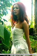 A redhead nymph slowly strips off her dainty dress, revealing a smooth fair complexion and gorgeous physique that stands out from the lush, green surroundings.