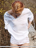 With a sexy smile on her face, evilina performs an erotic outdoor striptease as a prelude to a romantic evening.