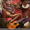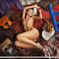 Saju a flaunts her sexy slender body and sweet pussy as she poses with a guitar.