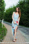 Emmy strips her purple dress as plyyfully poses showing off her sexy body, tight ass and yummy pussy.