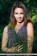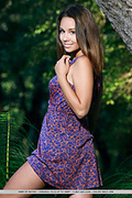 Vivian playfully poses among the bushes baring her nubile body and smooth pussy.