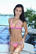 Newcomer juck, strips her pink bikini baring her lean, petite body and delectable pussy as she poses on the yacht.