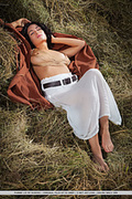 Pammie lee shows off her curvy body with large puffy breasts as she poses all over the hay.
