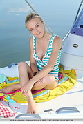 Fun and adventuruous aislin poses charmingly on top of the yatchs deck, soaking in the sun on naked body