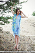 Like fun and flirty nymph, an alluring loretta a frolics among the bushes, a sheer blue shawl draped pver her smooth and delicate body.
