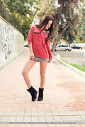 Long-legged seductress lorena b highlights her beautiful, svelte limbs and pretty feet, as well as her tight butt.