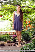 Connie portrays a sweet and cute garden nymph with her long, wavy brown hair, naturally beautiful face without any hint of makeup, and an exquisite body with womanly curves.