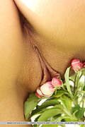 Mango enjoys displaying her gorgeous, nubile body among the flowery fields while wearing a sexy garter belt.