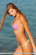 A stunning view of lorena's smoking hot, slender body, perfectly shines under the summer sun as she playfully lounges by the beach.