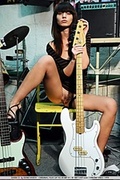 Pouty lips, bedroom eyes partially hidden by her bangs, and her large luscious breasts and untrimmed bush unshamedly bared, daria evokes a sultry and daring muse as she poses with a white electric guitar.