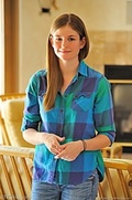 Kelsey spreads in a sweater