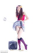 Delectable hot erotic photos nude bodies with an electro guitar in long striped socks stripping and spreading legs.