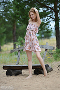 Beautiful slim amour angels sweet golden cutie with perky small tits stripping and spreading legs on a park bench.