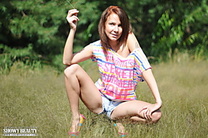 Actresses art naked models redhead strips her clothes in the fields of the country side to spread some of her lust and sexiness to nature.