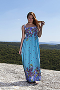 Delicious long haired bombshell undressing and demonstrating holes outdoor on the plateau.