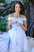 Tease in white stockings