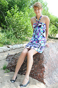 Nineteen glamor wifes stunner takes off her dress and lies down on the sand to show her sweet tits and pussy.