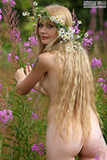 Fabulous attractive girls nude girls models angel is wandering in the valley in a chamomile garland and is looking for some other flowers to decorate her garland.