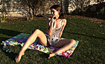 Teen seductress escapes to enjoy a smoke and an orgasm in the sunset