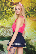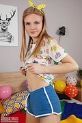 This incredibly sexy blonde teen gets off her white shirt and white knee socks showing her mind blowing body.