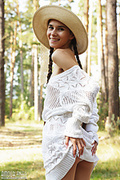 This extremely cute and beautiful blonde teen decided to get completely naked in the nature and spread her sexy legs.
