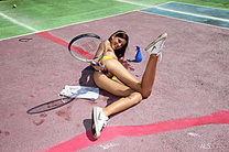 Stunning teen beauty little caprice flaunts her gorgeous body on the tennis court, using the racquet as a toy before teasing herself with a vibrator