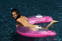 Teen cutie tamara jade plays around nude in the pool before getting bottle rammed in her pussy by redheaded friend