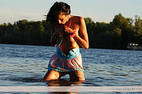 Young ukrainian pamela bathes naked in a lake.