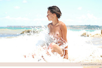 Nice angel poses nude in waves on a beach.