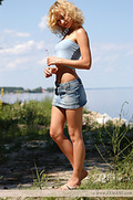 Young blond takes her clothes off and shows her fantastic body on a beach.