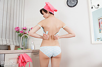 Hot and absolutely beautiful teen gets totally naked in her kitchen and shows you her private parts.