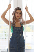 Watch this erotic and beautiful blonde girl posing in a green shirt getting fully naked and stroking her body.